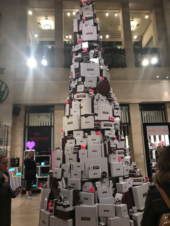 Henri Bendel wins for most creative tree in my book 😂. The tree is made of all different kinds of gift boxes.