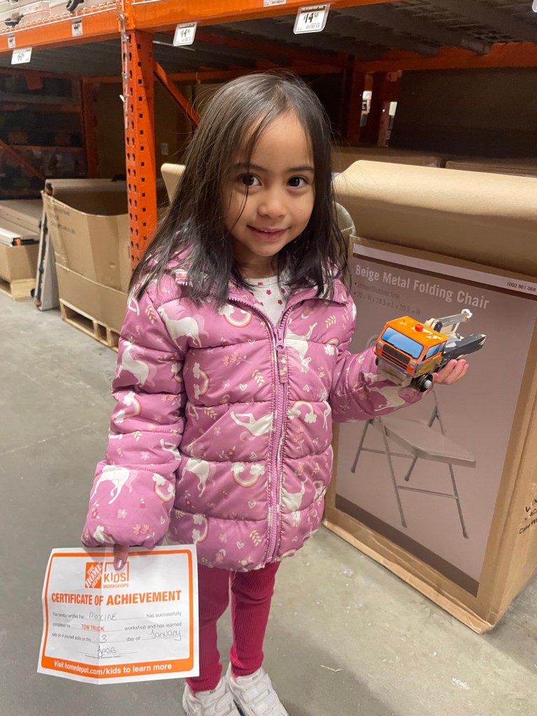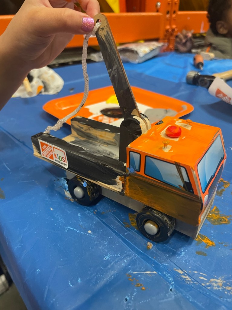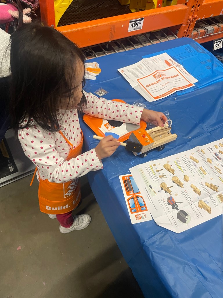 We are starting the new year by trying new things and learning! Every first Saturday of the month, Home Depot holds a free workshop for kids. This month, the workshop focused on building a tow truck. Staff provide you with everything you need to make it, including all the tools.