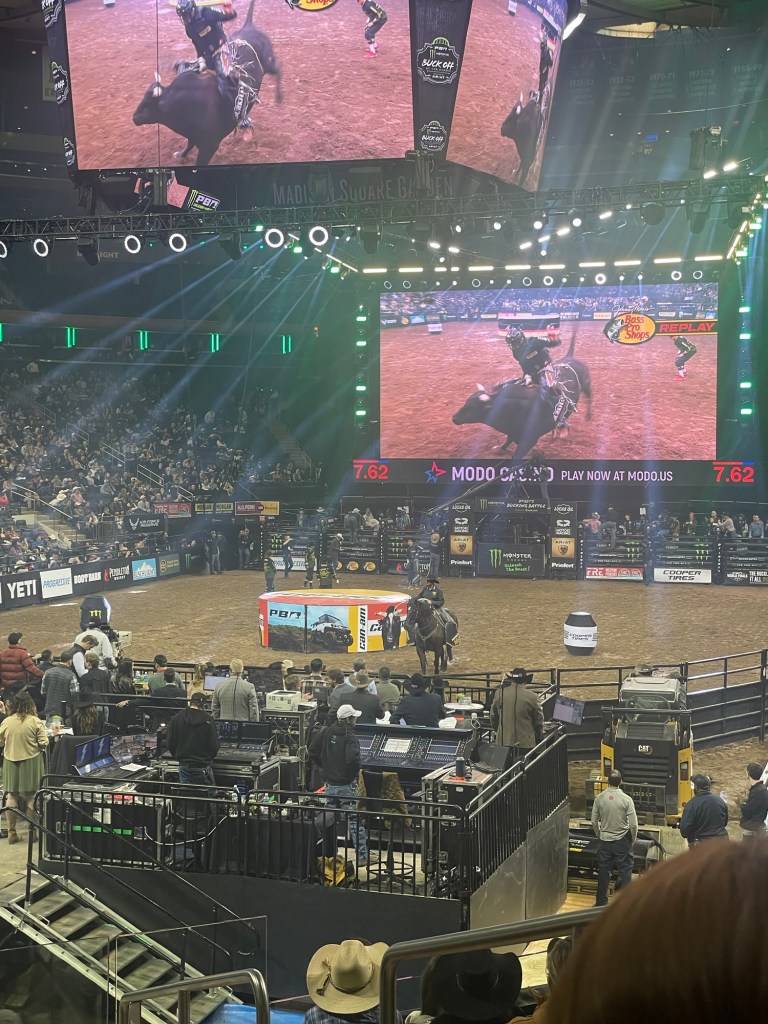 This weekend, Madison Square Garden is all about the Cowboys. PBR: Unleash the Beast is a bull-riding competition where riders must stay on a bull for 8 seconds. Both rider and bull are then judged by their performance. It’s pretty intense watching everybody ride, but also really fun. My friend and I had the best time.