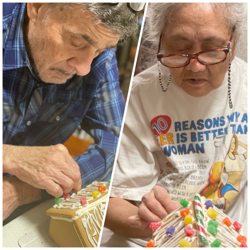 A big hit this year was the gingerbread houses! Two were made with my husband’s niece and nephew, and one was made with my parents.