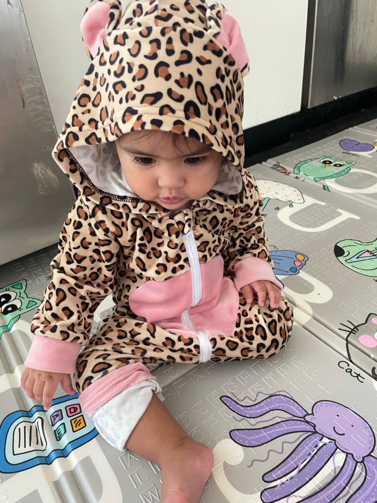 The best part of Halloween was dressing up Maxine. She was the cutest baby leopard. I also had her in pumpkin pjs the night before Halloween.
