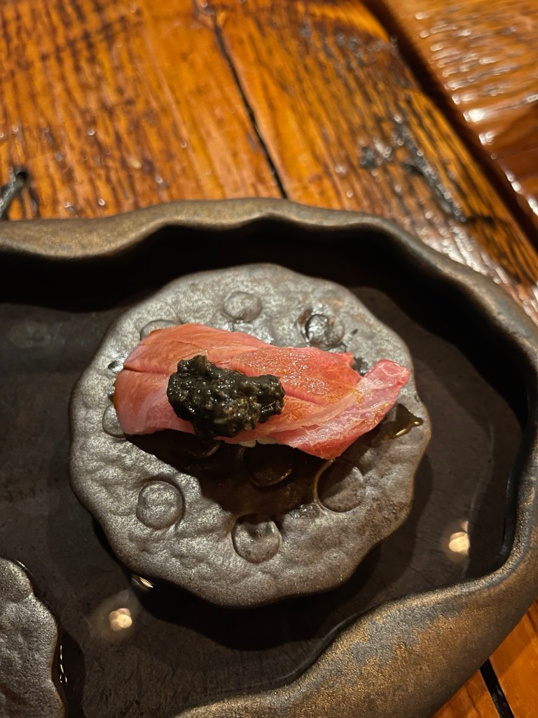 Last month, Andrew and I celebrated our fourth wedding anniversary at Sushi on Me. It’s a small place in Jackson Heights, Queens, with a cool speakeasy vibe. We enjoyed a 15-course omakase dinner with unlimited sake 😁.